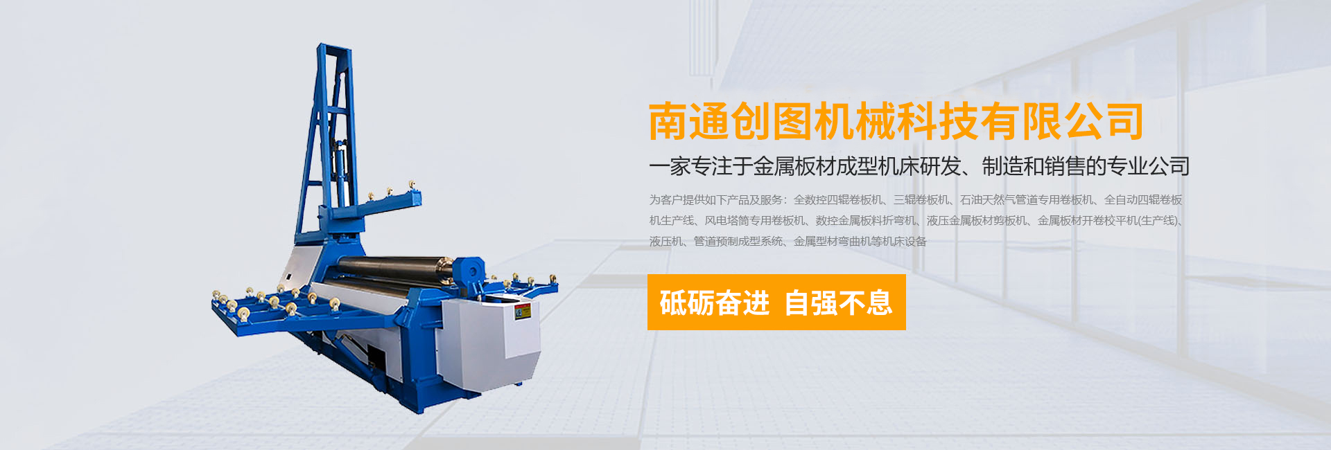 數(shù)控折彎機(jī),剪板機(jī),刨槽機(jī),全數(shù)控四輥卷板機(jī)、三輥卷板機(jī)、石油天然氣管道專用卷板機(jī)、全自動四輥卷板機(jī)生產(chǎn)線、風(fēng)電塔筒專用卷板機(jī)、金屬板材開卷校平機(jī)(生產(chǎn)線)、液壓機(jī)、管道預(yù)制成型系統(tǒng)、金屬型材彎曲機(jī)等機(jī)床設(shè)備,公司以精湛的設(shè)計能力,雄厚的加工制造能力,完善的售后服務(wù)能力,產(chǎn)品暢銷國內(nèi)20多個省、直轄市,并遠(yuǎn)銷德國、阿根廷、俄羅斯、印尼、伊朗等30多個國家和地區(qū)。